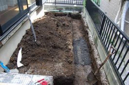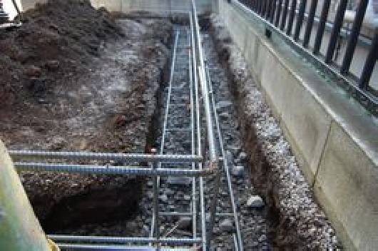基礎工事は、まず土台となるベース部を掘り基礎内部の金属を設置します。
