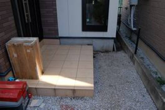 施工前(写真:左) 階段と玄関入口部の高さを変更しました。(写真:右)