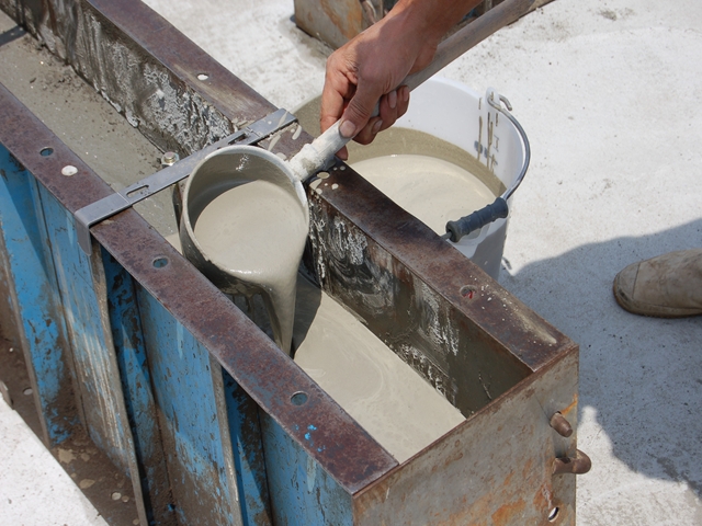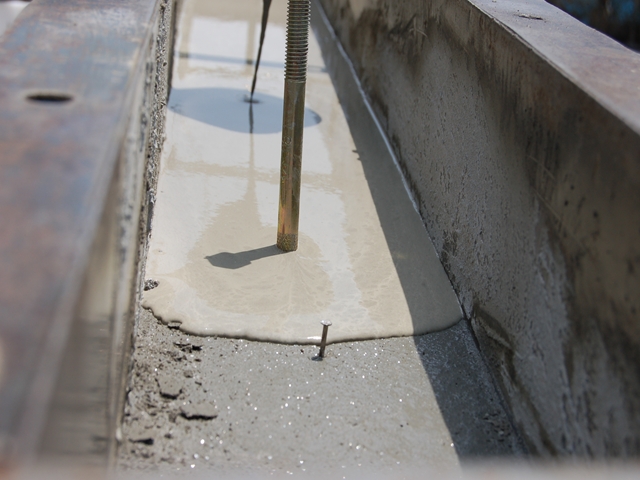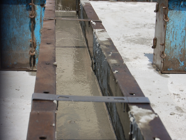 流し込み終わったらコテで慣らします。