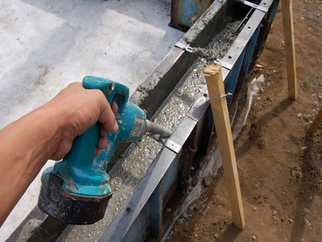 バイブレーターを使ってコンクリートの密度を上げ強度を上げます。