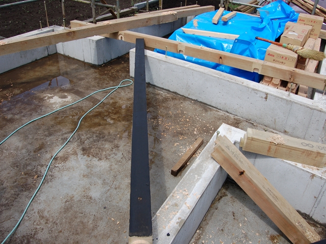 防蟻塗料を塗り終わったら土台を取り付けます。