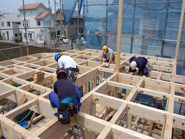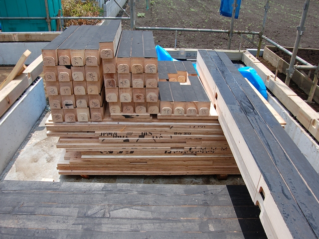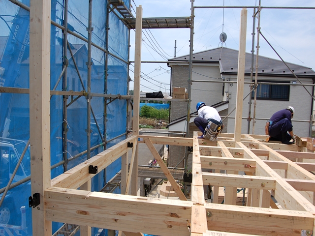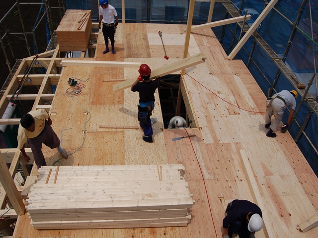 金物を取付終わったら2Fの床を敷きます。
