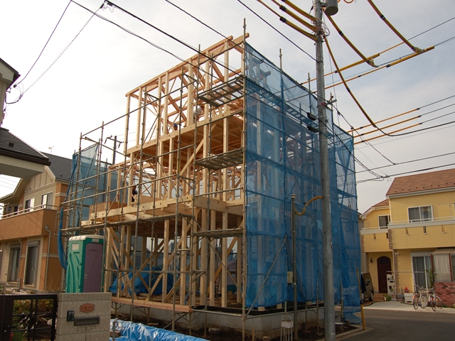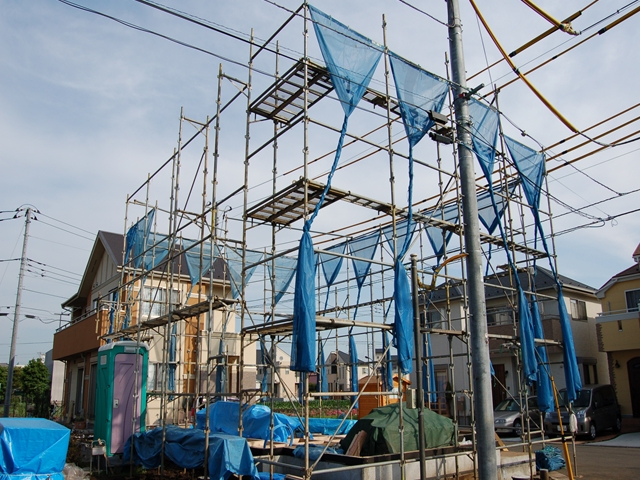 仮設足場・防護管が取付られました。もうすぐ上棟です。