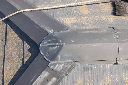 正解が解らない一般の方には理解しずらいですが、棟の収まりが雑すぎるという写真です。