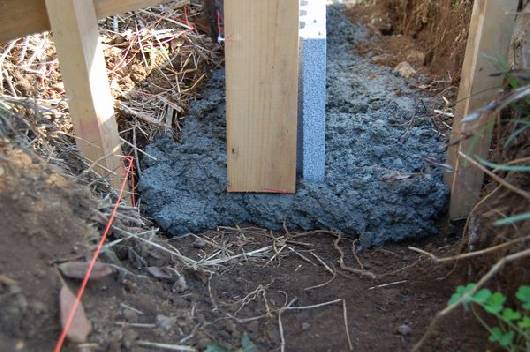 簡単に倒れてしまいそうな境界ブロック施工様子。