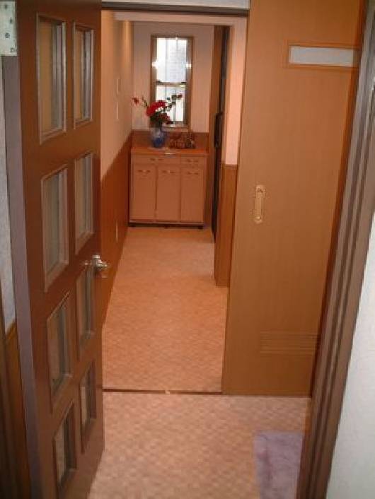 浴室の壁を解体。増築して廊下が伸びているのが解ります。