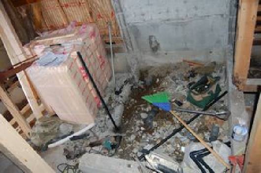 タイルのお風呂はブロックで覆われているケースが多い。サイズUPのため解体します。