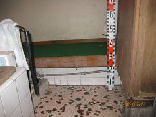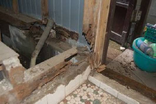 30cmはある浴室への段差。(写真左) 浴室解体後の柱・土台の様子(写真右)