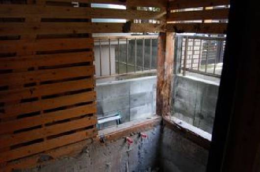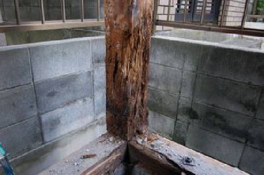 どうしてもタイルの窓付近は腐食してしまいます。左右に柱を追加し補強して塞ぎました。