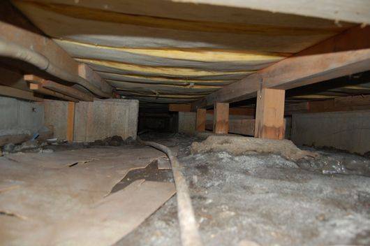 床下:水が溜まりカビが発生