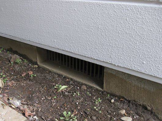 「ウチは基礎が低いからジメジメする」という相談をよく受けます。実際に拝見すると基礎が低いのではなく地面が高いとうケースがほとんどです。これは建物の作るときの設定GL(基準となる地面の高さ)を誤ったと考えられます。この状態だと雨水が通気口から床下に入ってしまい水溜まりができ部屋がジメジメしたりカビが発生したりという状況になってしまいます。対策としてはまず地面を下げる、吸湿材を敷く、換気扇を設けるなどして床下を換気するのが良いと思います。