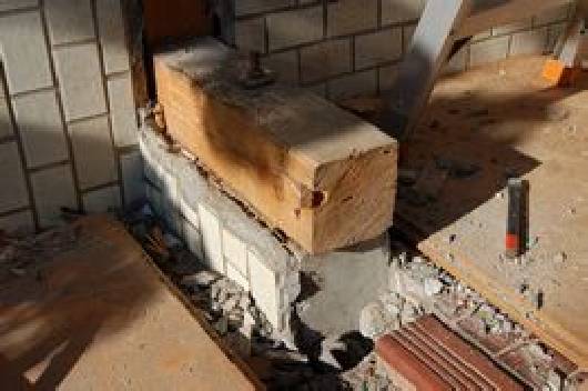 間口を広げるため基礎を解体します。 新しいサッシの自重に耐えるよう柱を入れ替えます。