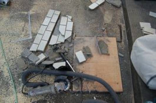 解体した部分にはもう一度タイルを貼る必要があります。築年数が経過しているため同じタイルは存在しないので解体個所から外して綺麗に納めます。